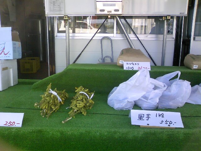 今日枝豆とサツマイモと里芋と新米を販売していました。