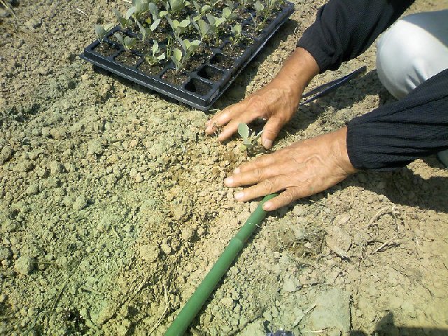 大根種まき、キャベツ苗植え