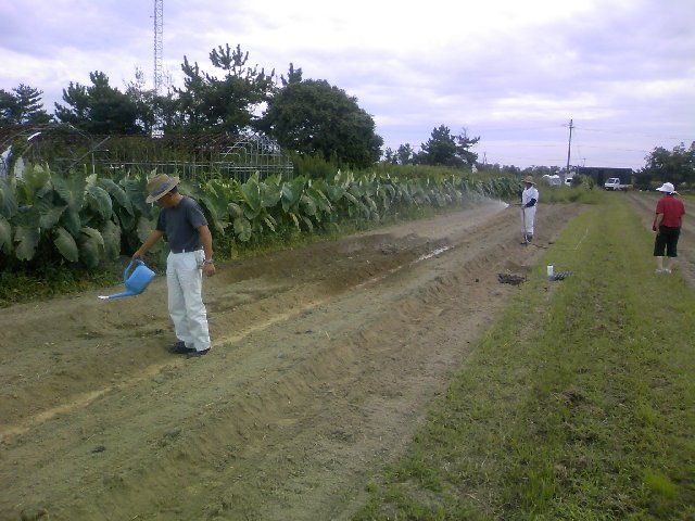 大根の種まきが終わったので水を撒いているところです。