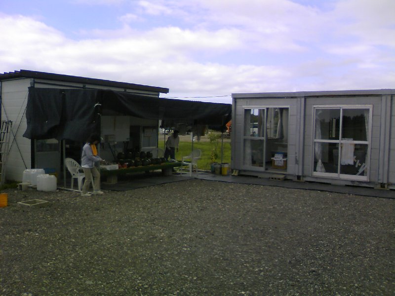 代表が神戸から貰ってきたコンテナハウス4基の建物(右)今のところ事務所として使う予定。